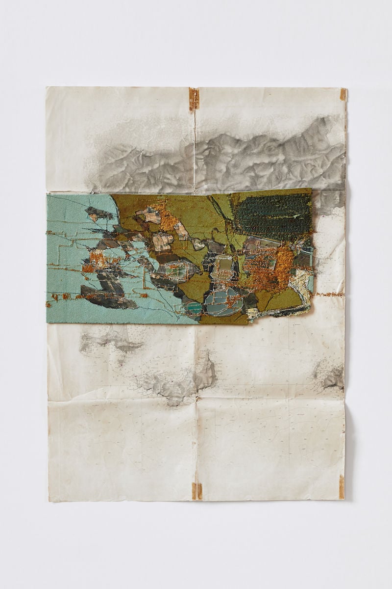 Cathryn Boch dessine avec la couture, la mêlant à des supports tels que cartographies, images satellites ou cartes postales, mais aussi acryliques ou autres matériaux. Sa quête du corps et de l’intime a rejoint celle des territoires et des paysages, pour nous conter l’histoire des hommes.